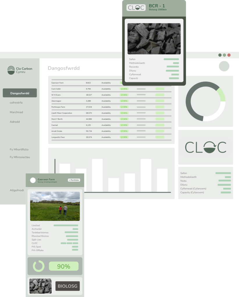 • Delweddu Effaith Tynnu carbon wedi'i fapio i ffermydd/rhanbarthau penodol